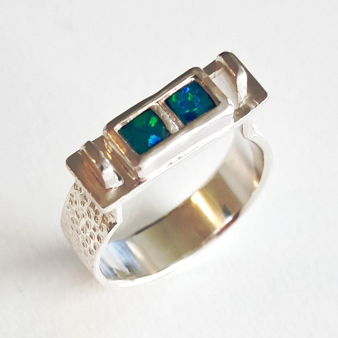 In opdracht ontwikkel ik een ring die niet over de knokkels van een vinger hoeft als deze verdikt zijn. Een normale ring zou dan te groot zijn op de plek waar je de ring draagt. De ring heeft een opening waar je je vinger doorheen schuift. Met een soort afdekplaatje sluit je de ring af. Voor deze klant heb ik de ring voorzien van steentjes uit een van haar eigen ringen die ik omsmelt. Het is geen alledaagse ring en ook niet om dagelijks te dragen. Een designring voor de bijzondere momenten.