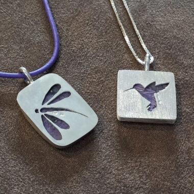 Aan de achterzijde is een kolibri uitgezaagd.
