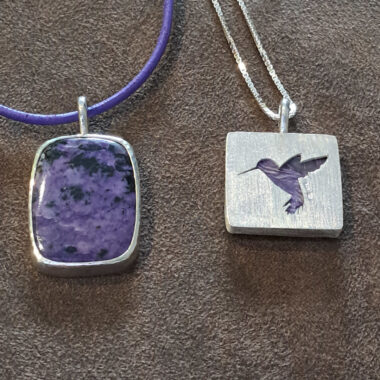 Ik heb een vraag over dit productDeze hanger heeft een prachtige, rechthoekige charoiet en is gezet met een lichte hamerstructuur in het zilver.