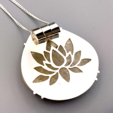Hanger met een transparante honingcalcietschijf aan zilveren gourmetcollier